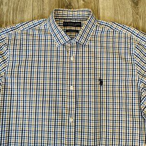 Us Polo Assn Shirt Wrinkle Resistant Mens XL 17 Long Sleeve Button Up Plaid Blue