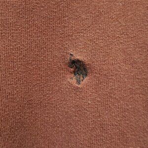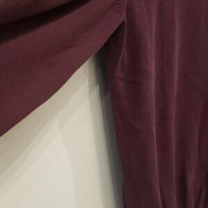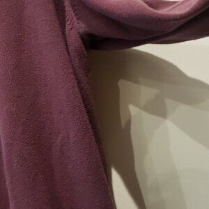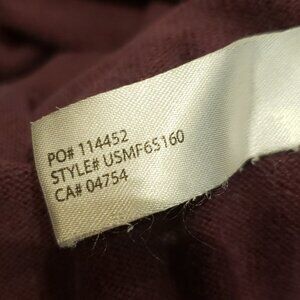 This eggplant/plumb color men's sweater is in good condition with some wear. No tears, rips or stains. Slightly faded and balling throughout. See photos.