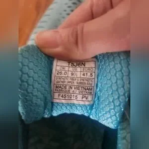 used condition. please refer to photos for details. it's a pretty light blue. the right shoe got two burning marks from BBQ, not sure if they can be removed. selling as they are. size 9.5. still got a lot of life left in them. priced accordingly.