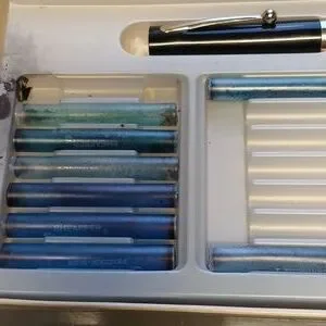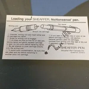 It comes with one NoNonsense Sheaffee pen, 9 cartridges ( one inside pen) 3 nibs, one inside pen)