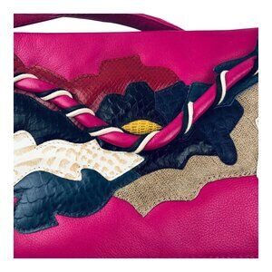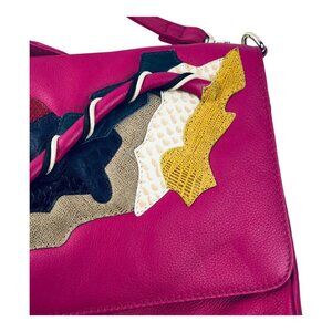 Uterqüe Pink Fuchsia Handbag Crossbody Multi-Color Appliqué