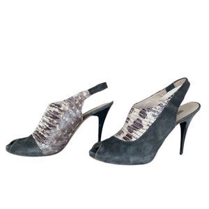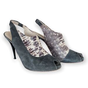 EUC uterque suede peep toe slingback heels Grey suede 4” heel New heel caps needed Size 38