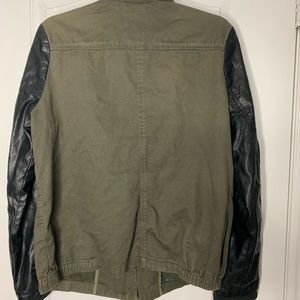 Pleather sleeve and Olive green canvas jacket. Size Large