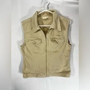 This versatile khaki utility vest is perfect for adding a touch of military-inspired style to your wardrobe. Featuring multiple pockets and a classic design, this vest is both functional and fashionable.