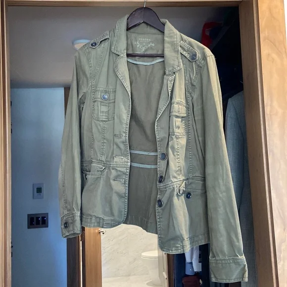 Size medium utility jacket. Front button . Fitted at waist