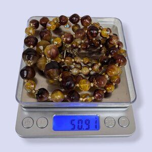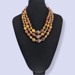 V. 3-Strand Brown & Yellow Beaded Statement Necklace