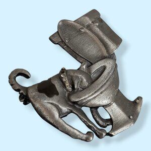 V. JJ Pewter Dog Drinking From Toilet Brooch