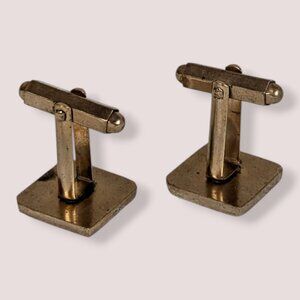 These vintage cufflinks are made of a gold tone metal and have hexagonal toggle backs. The tops of the cufflinks are square and have the appearance of dice with rhinestone dots - one is a 2, the other is a 5 (for a total of 7, which is lucky). There is normal wear throughout, including some tone darkening and clouding, but the pair is still very wearable. I can't confirm how much luck is left in them, but I'll imbue what I can before shipping them.