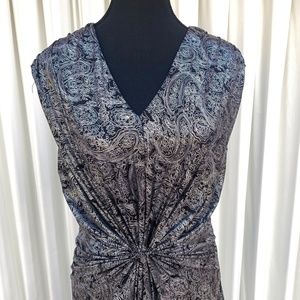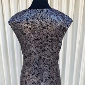 Black and Silver, short, fit and flare style dress. Size 10 Petite. V-neck with gathered front