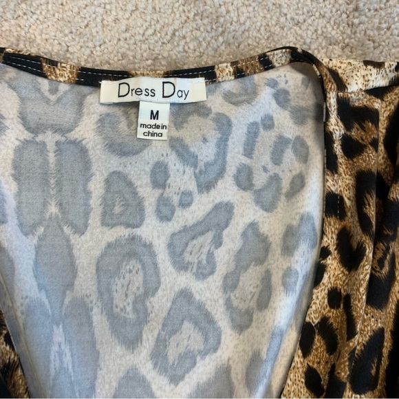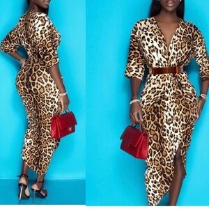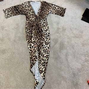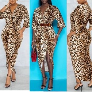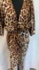 V Neck brown tan Leopard animal Print Asymmetrical maxi wrap Dress Sz M