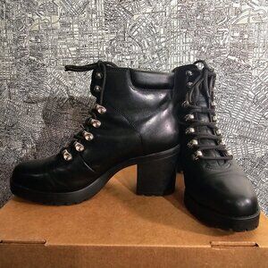 VAGABOND Grace Black Leather Lug Sole Lace Up Boots| Sz 10