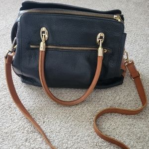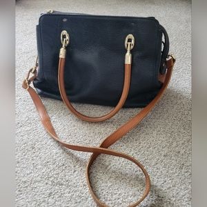 VALENTINA Vintage Pebbled Black and Brown Leather Satchel - Great Condition