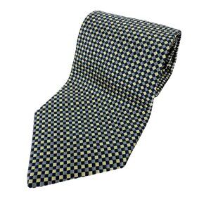VALENTINO 100% Silk Made in Italy Checked Geometric Gold Gray & Black Tie 54"