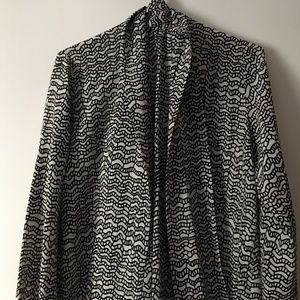 VALENTINO Black + White Print Silk Bow Scarf Neckline Blouse 44 L
