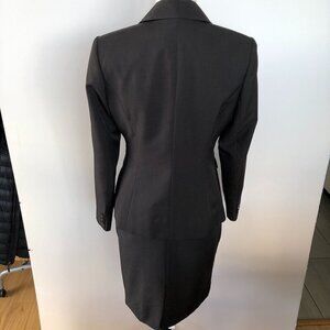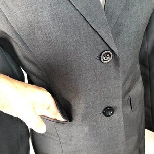 VALENTINO CHRISTY PARIS Women's 3 piece custom made suit charcoal grey suit, black lining 3 piece 2 button single breasted blazer pant skirt