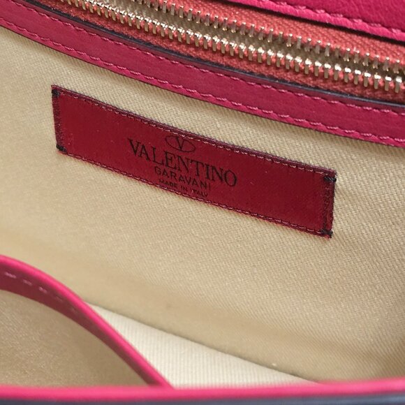 VALENTINO - Fuchsia Leather Small Rockstud Glam Lock Flap Bag Pink