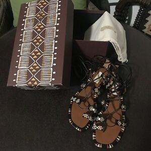 VALENTINO GARAVANI Hand-Painted Leather Studded Gladiator Sandal, 37