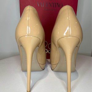 VALENTINO GARAVANI Patent Open Toe Bow Pumps