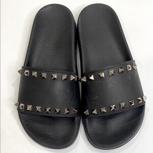 VALENTINO GARAVANI ROCKSTUD BLACK SLIDES SANDALS