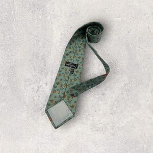 VALENTINO Green/Orange Floral Leaf Silk LUXURY Tie ITALY