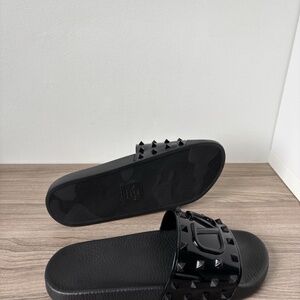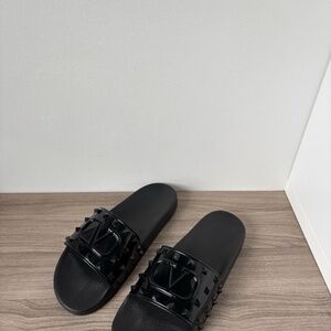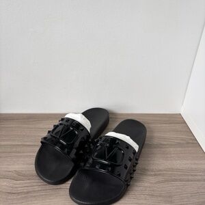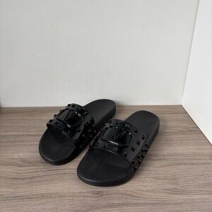 VALENTINO Slides V-Logo Rockstud PVC Black Men's 42 / 9US NEW 525$