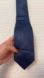 VAN HEUSEN 100% silk neck tie navy blue medium blue silver polka dot pattern. Fabric was treated with a stain resistant fabric protector