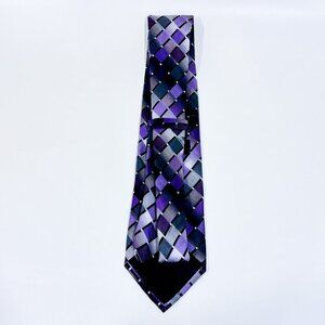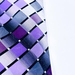 VAN HEUSEN Purple, Black & Silver Plaid Silk Tie *