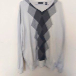 VAN HUESEN | Men's V-Neck Argyle Sweater Grey White Black Size X Large