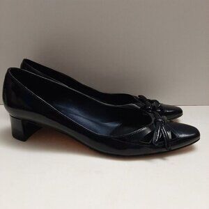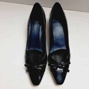 VANELI Bow & Cut-Out Low Heel Navy Blue Patent Genuine Leather Classy Pumps Sz 9