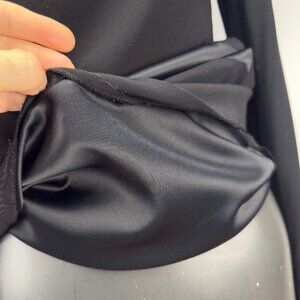 VANESSA BRUNO Draped Sheath Satin Band Long Sleeve Boat Neck Black Midi Dress FR 38 (US 6)