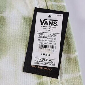New with tags, Vans 1966 Big Kids Youth Mind fleece short in Celadon green and white tie dye, size Large Reg.