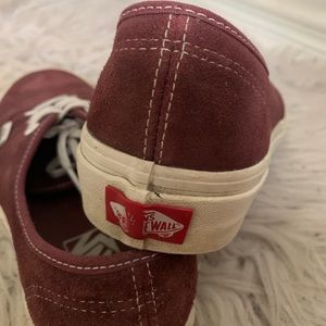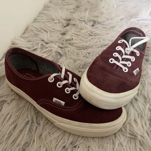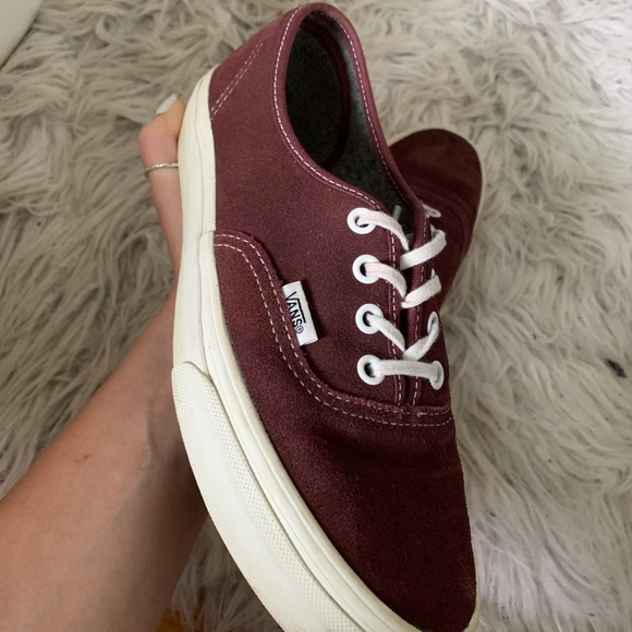 Classic styled Maroon vans with white laces. Worn a hand full of times.