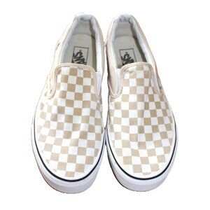 Elevate your footwear collection with the VANS Classic Checkerboard Slip-Ons in Warm Taupe Brown/White. These unisex sneakers, available in US women's size 11 (men's 9.5), blend a timeless retro vibe with the durability and comfort required for everyday wear. The iconic checkerboard pattern stands out on the canvas upper, accompanied by a padded collar, elastic side panels, and a reinforced toe bumper, all designed to provide an enhanced fit and lasting wear. The slip-on style ensures easy on-and-off accessibility, perfect for those on the go. VANS' signature waffle outsole pattern offers reliable grip since '66, while the vulcanized sole delivers superior board feel and flexibility, making them ideal for skateboarding or simply strolling through the city. Whether you're embracing the streetwear scene or heading to the skate park, these sneakers are versatile for both activewear and casual outings.
