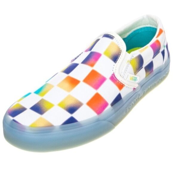 These colorful Vans Classic Slip-on sneakers come in the classic skate style with a modern and eye-catching update and feature the original Vans waffle sole, Vans Off the Wall skateboard logo and a lovely, colorful check print. A quirky look that'll pop out combined with a style that never goes out of fashion.