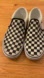 Classic Vans slip-ons with a bold checkered pattern. Comfortable and stylish.