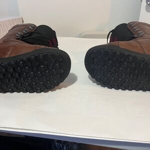 Excellent condition as pictured. Ridden 6-7 times. Red laces were included in box, I replaced with Black laces, looked better IMO. Leather has been treated with Nixwax. Insoles were never used, I had orthotics. So brand new insoles. After riding the insole/liner was removed to properly air dry, these boots smell brand new still.