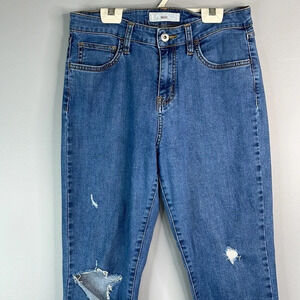 VANS High Waist Skinny Jeans Blue Medium Wash Distressed Busted Knee Skater 28