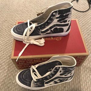 VANS SK8-HI TAPERED Denim Destroy Gray Canvas Skate Sneaker Mens 6.0 - Women 7.5