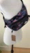 Vans Off the Wall Street Ready adjustable waist bag or fanny pack. Black and purple abstract floral. Branded interior lining in large compartment. Additional front zipper pockets and one zipper pocket on the back. Plastic buckle. Bag is 100% polyester.