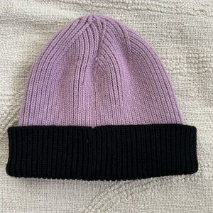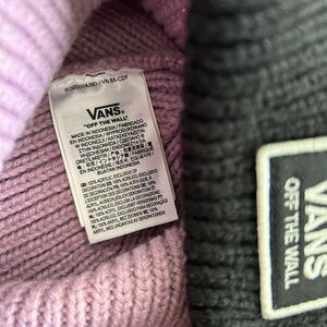 VANS Ribbed Knit Beanie. Onesize, adjustable cuff. Purple/Black. Embroidered patch front.