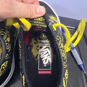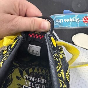 These Vans Spongebob shoes in size 3.5 are a fun and colorful addition to any sneaker collection. Featuring a black and yellow design with iconic Spongebob graphics, these sneakers are sure to stand out. Perfect for any fan of the popular cartoon character, these Vans are a must-have for those looking to add a touch of playful style to their footwear. Ideal for casual wear, these sneakers are comfortable and stylish, making them a great choice for everyday use.
