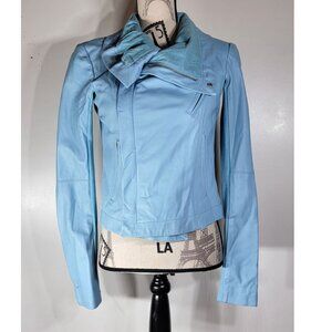 VEDA Asymmetrical Zip Leather Moto Jacket, Sky Blue, Women’s Size Medium
