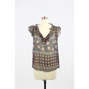 VELVET BY GRAHAM & SPENCER Kimora Monaco Floral Georgette Ruffle Blouse, Size S