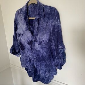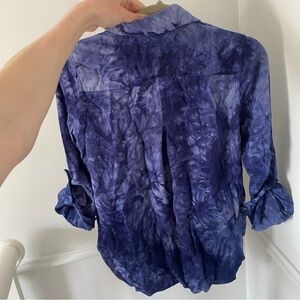 VELVET Heart Long Sleeve Tie Dye Navy Blue Blouse Small