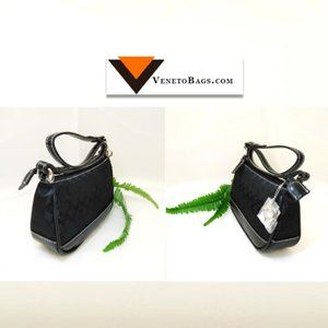 VENETO Stylish Mini Small Shoulder Bag Carryall Purse, Black Jacquard Canvas Tonal ‘G’ Print. Fully lined. Brand New w/o tag