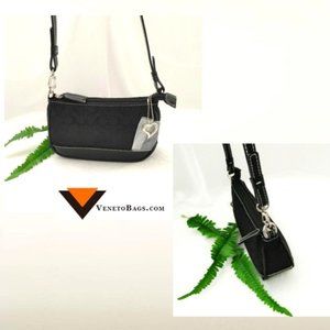 VENETO Mini Small Shoulder Bag Black Jacquard Canvas Tonal Print Lined NWT