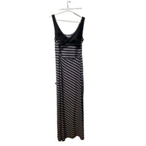 VENUS Black Grey Striped Side Slit Cut Out Back Casual Summer Maxi Dress Small