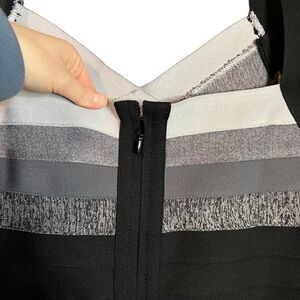 Chic VENUS dress with bold black and gray stripes. Elegant design with a flattering fit. Perfect for any occasion.