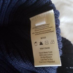 VENUS Dark Navy Cold Shoulder Sweater Top. Ties on both shoulders. Scalloped Sleeves. Size M. NWOT