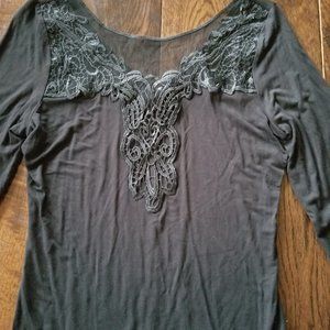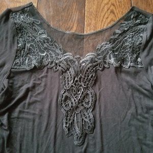 VENUS Lace and Mesh Top with Bell Sleeves. Size Small. Color Black. NWOT